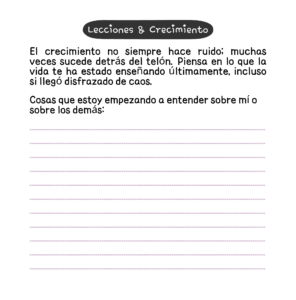 Propone un espacio sostenido para escribir, observar patrones y acompañar emociones con atención, humor y honestidad.
