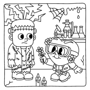 Groovy & Spooky Mental Health es un libro de colorear para adolescentes y adultos que aborda la salud mental desde el juego, la metáfora y el humor. En este libro, Mente y Corazón se adentran en un universo ilustrado donde miedos, pensamientos recurrentes y emociones complejas toman forma de personajes simbólicos.